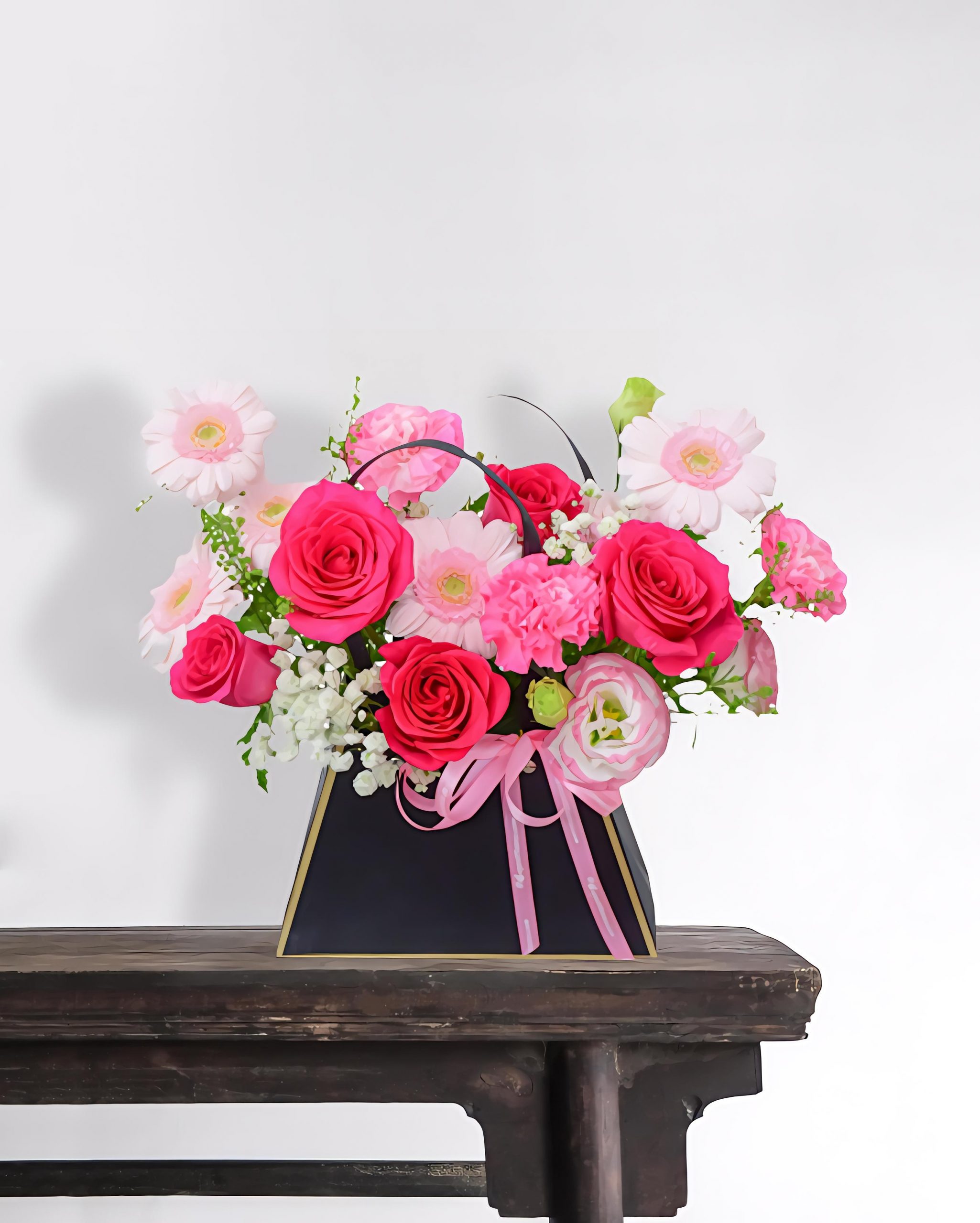 Giỏ hoa tươi “Hân Sắc” là lời ca ngợi vẻ đẹp rạng rỡ và thanh tao của người phụ nữ hiện đại. Sắc hồng dịu dàng từ hồng Pink Floyd hòa quyện cùng cẩm chướng hồng dâu và cát tường hồng viền, mang đến cảm giác ngọt ngào nhưng vẫn đầy khí chất. Giỏ hoa là món quà tôn vinh niềm vui, sự tự tin và nét duyên dáng – dành tặng cho những người phụ nữ luôn tỏa sáng theo cách riêng của mình.