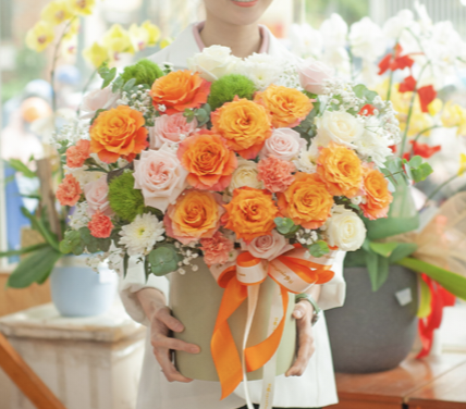 Hộp hoa tươi “Hạnh Lộ” – con đường của hạnh phúc và yêu thương bền bỉ. Lấy cảm hứng từ hành trình “Keep Going”, giỏ hoa mang sắc cam – trắng – hồng nhẹ, tượng trưng cho khát vọng, sự chân thành và niềm hy vọng không tắt. Mỗi cánh hoa như một lời nhắn: “Dù khó khăn, tình yêu vẫn đẹp khi ta chọn bước tiếp cùng nhau.” Một món quà ý nghĩa cho những ai đang tin tưởng vào hành trình của trái tim.